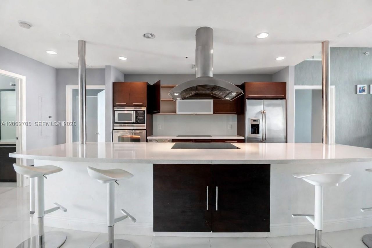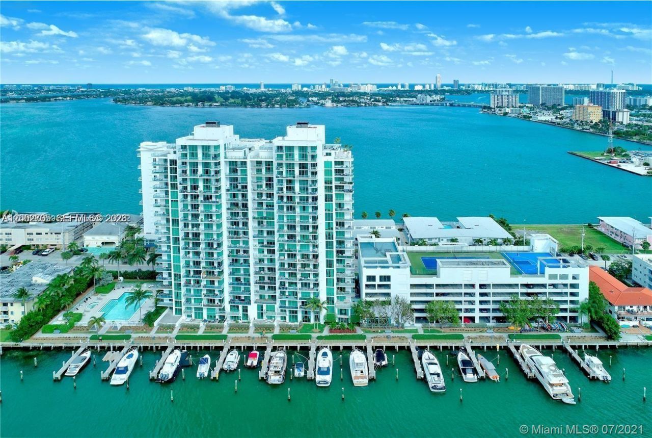 Elegantly appointed 1,400 sq. ft. condominium in the prestigious North Bay Village enclave, ideally located just minutes from Miami Beach, Midtown, Downtown, and North Miami. This residence features soaring ceilings and breathtaking panoramic vistas, capturing the westward shimmer of the water against the Miami skyline and the expansive eastern horizon. The spacious master suite is a true sanctuary, complete with an expansive walk-in closet, luxurious ensuite bath, and direct balcony access. The secondary bedroom, designed in a suite-style layout, also enjoys its own east-facing balcony. A generous den offers versatile use as a cozy third bedroom or home office. The unit includes two dedicated parking spaces.
